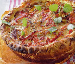Stendete tre quarti della pasta col mattarello, in modo da ottenere un disco col quale fodererete la tortiera.